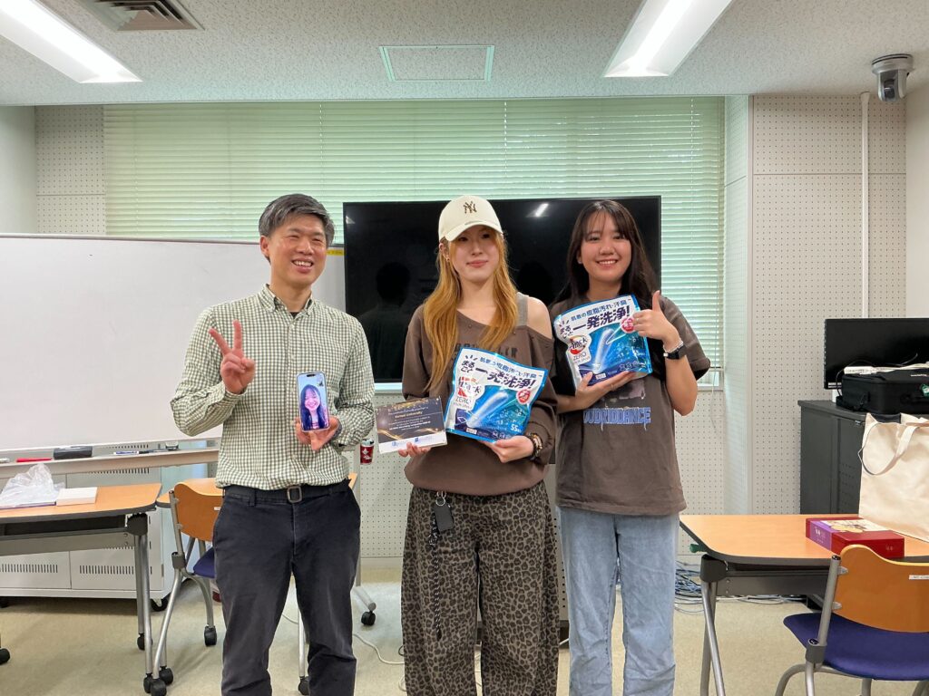 課題企業としてKAO(HK)の協力のもと、学生は同社のライフスタイル製品を対象にプロモーション戦略を立案しました。各チームは市場分析からコンセプト設計、クリエイティブ制作までを行い、最終発表では完成度の高い広告キャンペーンとして提案しました。当日はKAO International(東京)の関係者もオンラインで参加し、学生の提案に対して実務的な観点から講評が行われました。