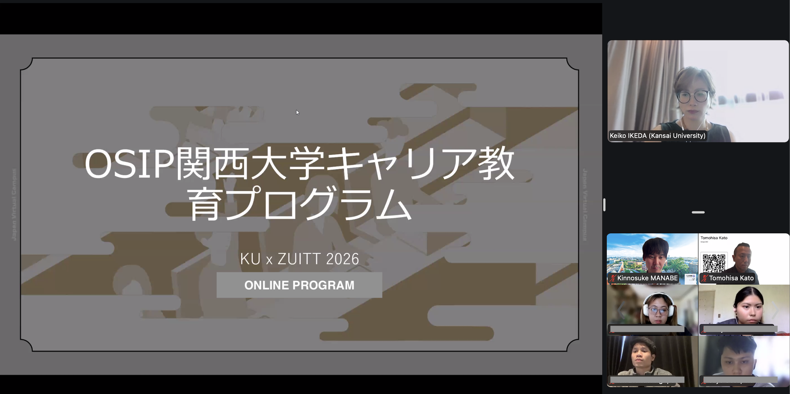 本プログラムは、渡日前オンラインセッションと渡航後の関西大学における2日間の対面的トレーニングから成るものであると同時に、関西大学の学生バディとの共修、異文化理解、コミュニティ・ビルディングの機会を提供するものでもあります。また、オンラインセッションの後半では、バディを務める関西大学の学生との交流もおこなわれました。フィリピン人エンジニアたちは、3月上旬に来日し、関西大学でのトレーニング(模擬面接や異文化理解セッション)を受講したのち、実際の就職活動に臨みます。