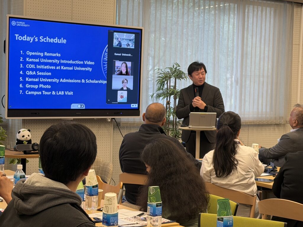 The program featured presentations on Kansai University's educational programs, admissions systems, scholarship opportunities, and Collaborative Online International Learning (COIL) programs, followed by an open exchange of views with participants. Attendees expressed strong interest in the academic environment in Japan and international education programs, making the occasion a valuable opportunity for them to deepen their understanding of Kansai University's educational environment and research activities.